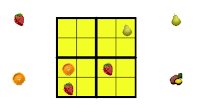 Frutodoku es un pasatiempo análogo al sudoku, siendo el objetivo rellenar una cuadrícula con frutas sin repetir ninguna fruta en una misma fila, columna